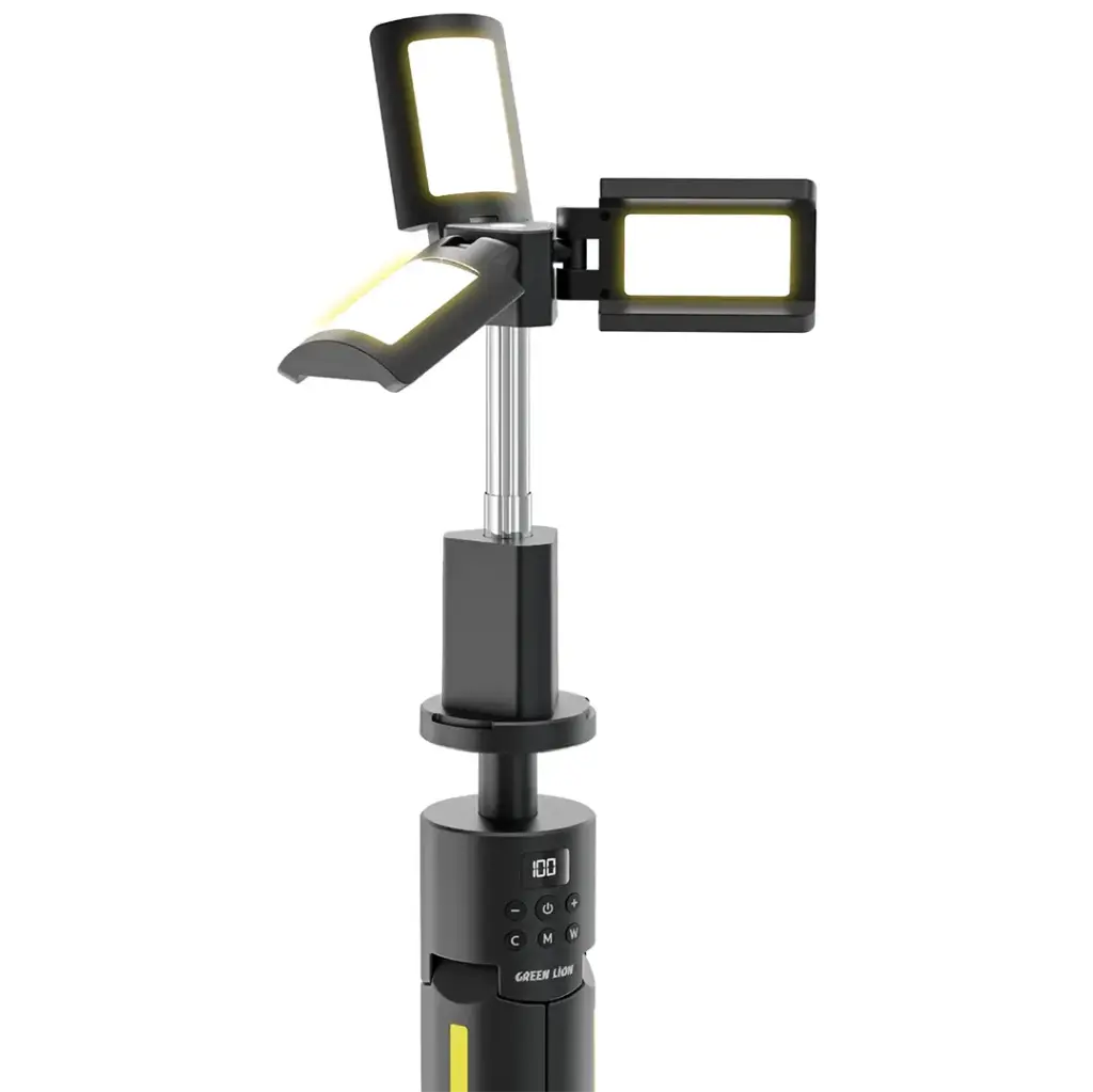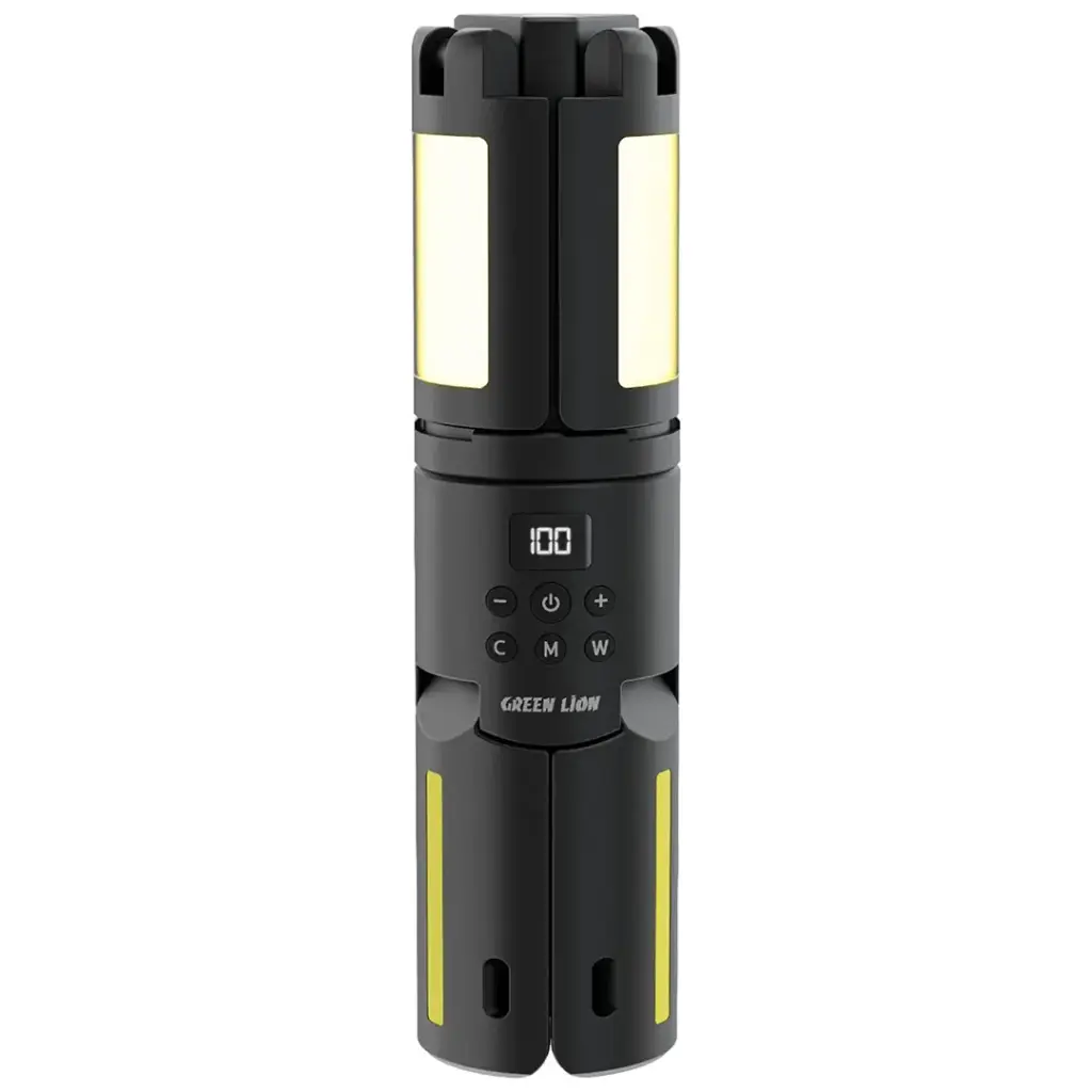 استمتع بإضاءة قوية وواسعة أثناء التخييم والرحلات مع مصباح جرين ليون ثلاثي الشعاع المزود بحامل ثلاثي ثابت وتصميم يمكن طيه وتنظيمه بسهولة ليناسب كل الاستخدامات الخارجية