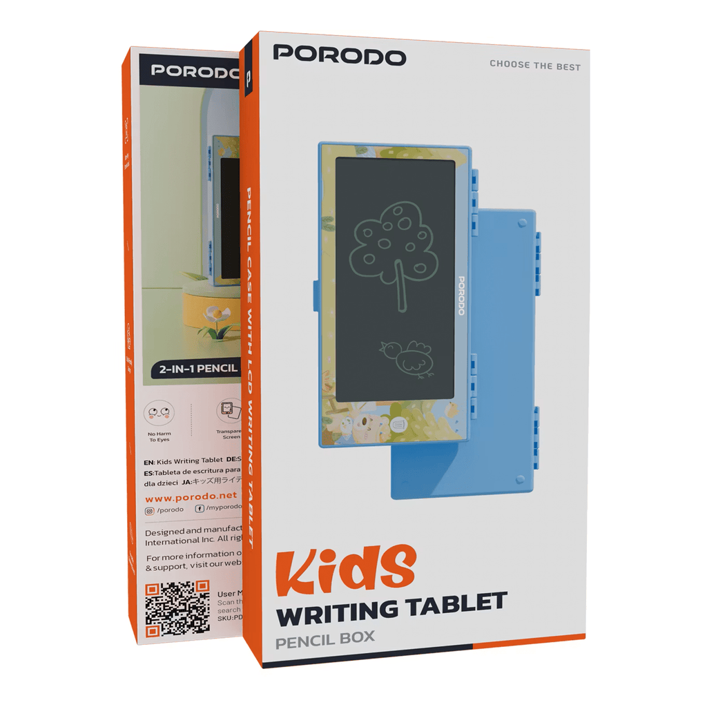 Turn learning into a fun and creative experience with the Porodo 2-in-1 Kids LCD Writing Tablet. Featuring a clear 7-inch screen, it allows kids to write, draw, and practice with ease. The built-in pencil case keeps drawing tools organized, making it practical for everyday use