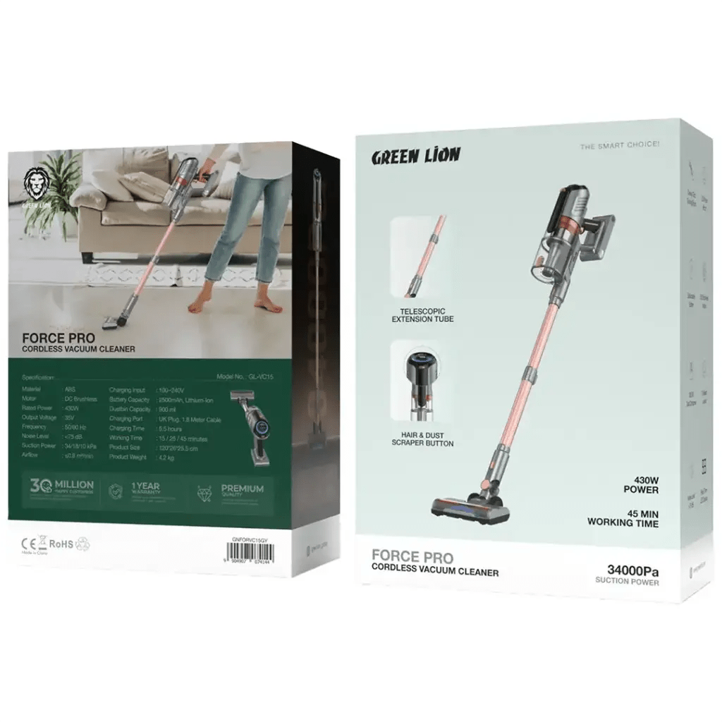Keep your home clean with power and ease using the Green Lion Force Pro Cordless Vacuum Cleaner, designed to deliver strong suction and a comfortable cleaning experience without the hassle of cords. It combines powerful performance with a practical design for everyday household use