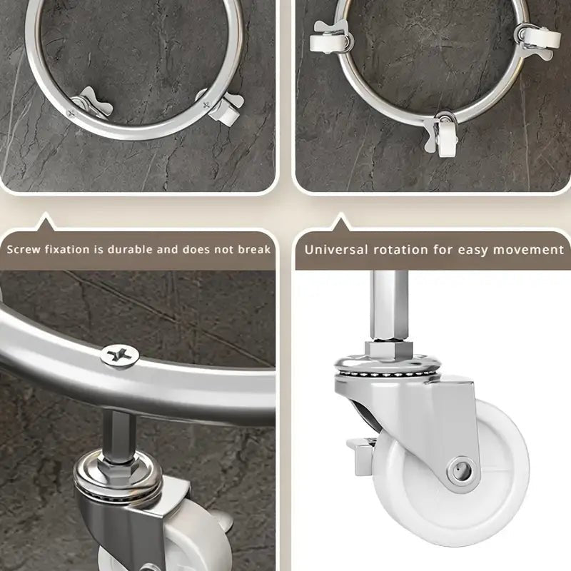 Made from stainless steel, this stand is incredibly strong and durable. Its modern black-and-silver design fits seamlessly into any space—be it your home, workshop, or storage area. It’s not just about easy mobility; it’s about safety, reliability, and convenience.