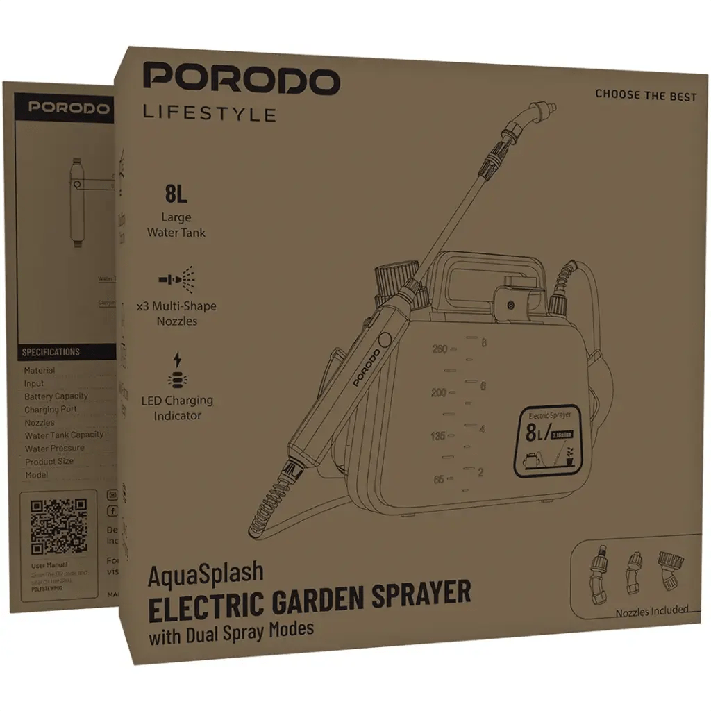 The Porodo Lifestyle AquaSplash Electric Garden Sprayer is the perfect choice for convenient and efficient garden care with modern ease