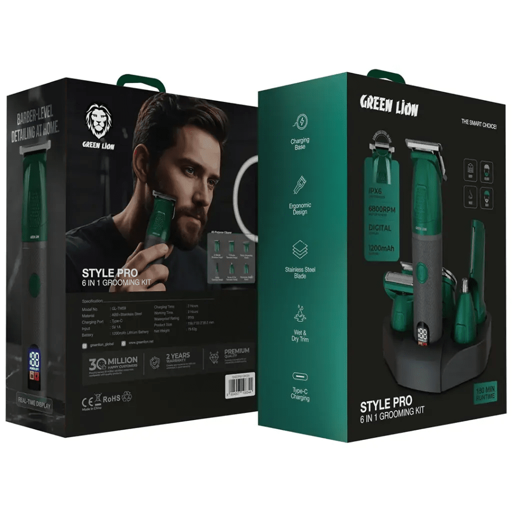 Upgrade your grooming routine with the Green Lion Style Pro 6-In-1 Grooming Kit, designed to deliver precision, versatility, and convenience for the modern man. With multiple attachments and smart features, it provides a complete and effortless grooming experience
