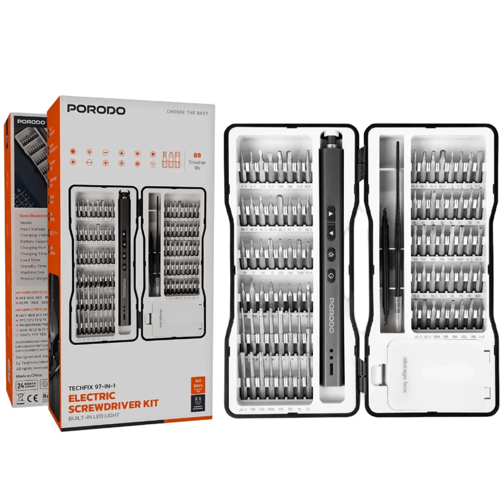 The Porodo TechFix 97-in-1 Electric Screwdriver Kit is the perfect all-in-one solution for portable precise and reliable repair work