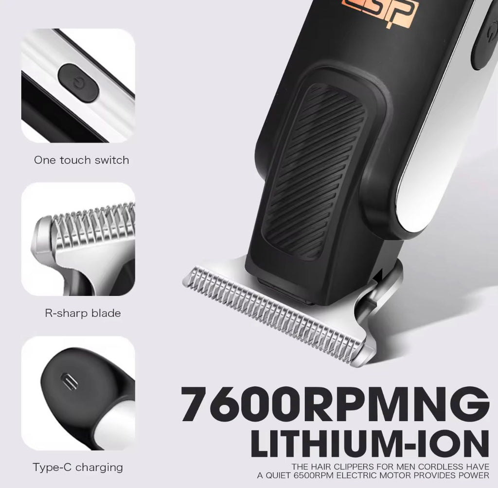 The DSP Professional Hair Clipper delivers precise and fast trimming with a powerful 6500 RPM motor