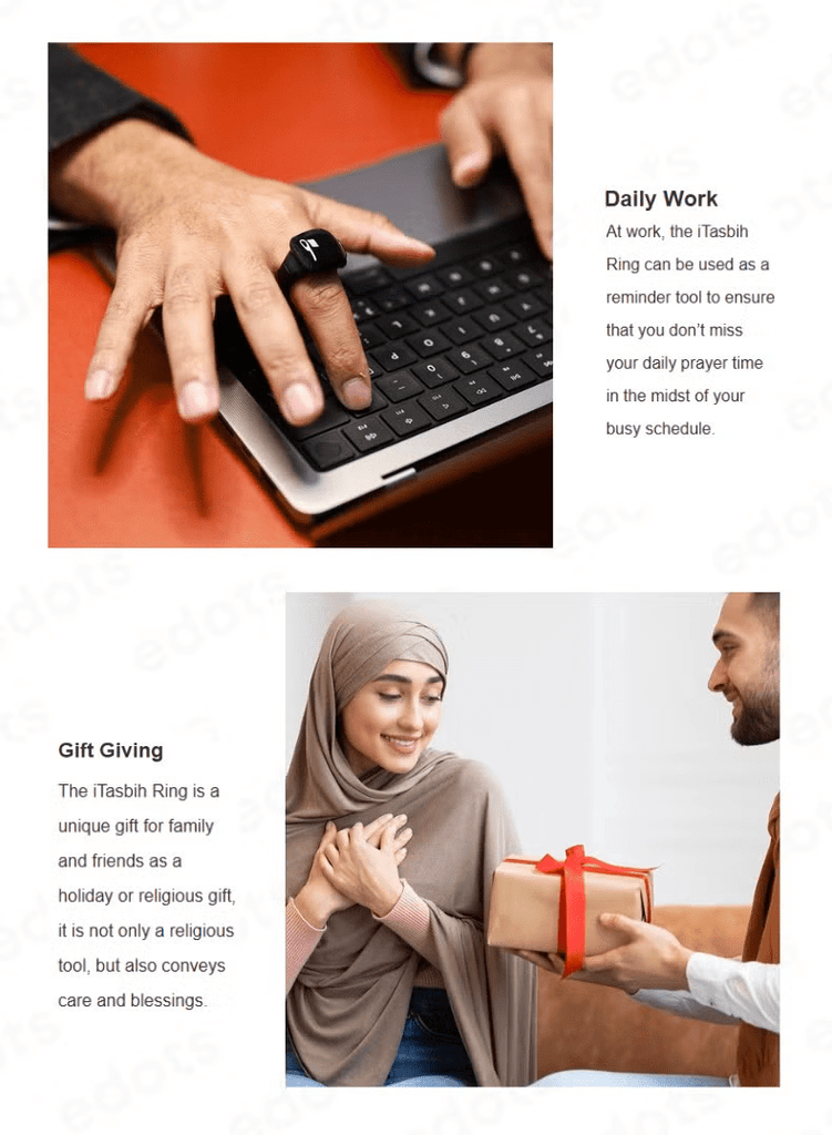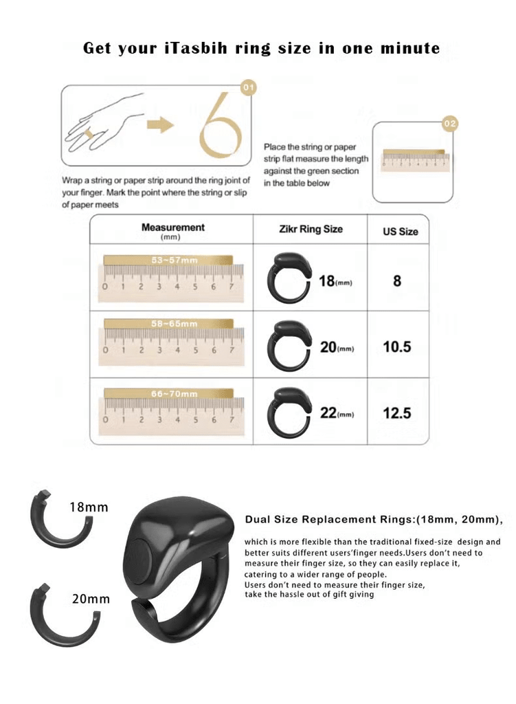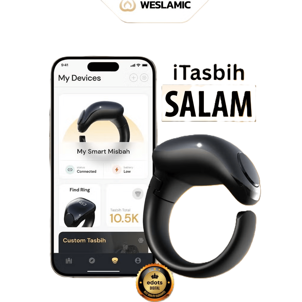 ارتقِ بتجربتك الروحانية اليومية مع خاتم التسبيح الذكي آي تسبيح سلام+ من ويسلاميك ، المصمم ليجمع بين روحانية الذكر والتقنية الحديثة في تصميم أنيق ومريح. يساعدك على متابعة تسبيحك وأذكارك بسهولة وهدوء في أي وقت ومكان