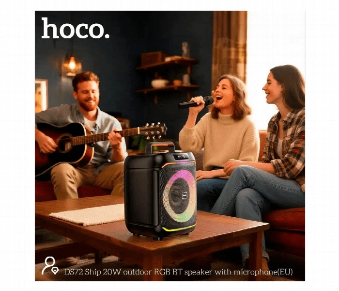 استمتع بتجربة صوتية قوية ومليئة بالحيوية مع سماعة هوكو، المصممة لتمنحك أجواء ممتعة في كل وقت سواء للموسيقى أو الكاريوكي، مع إضاءة جذابة تضيف لمسة احتفالية مميزة