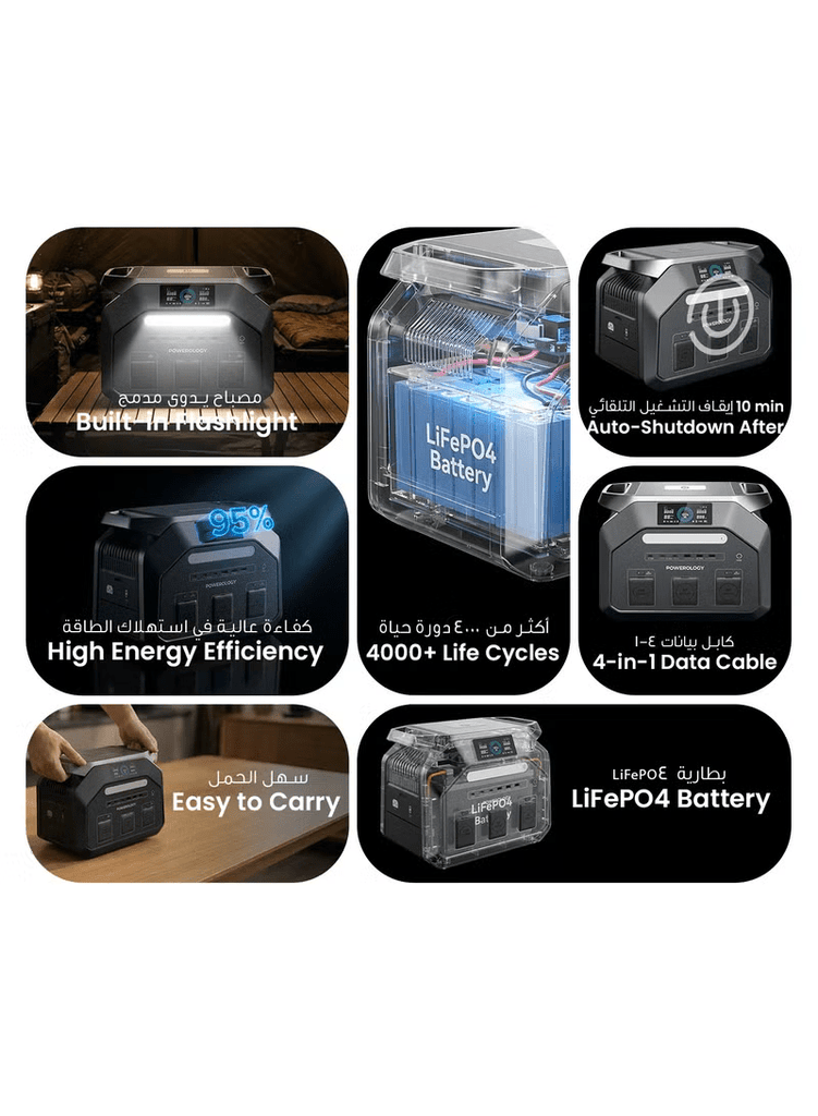استمتع بطاقة قوية وموثوقة أينما كنت مع محطة الطاقة باورولوجي دايناميك 1800، المصممة لتلبية احتياجاتك في الرحلات، التخييم، أو حالات الطوارئ