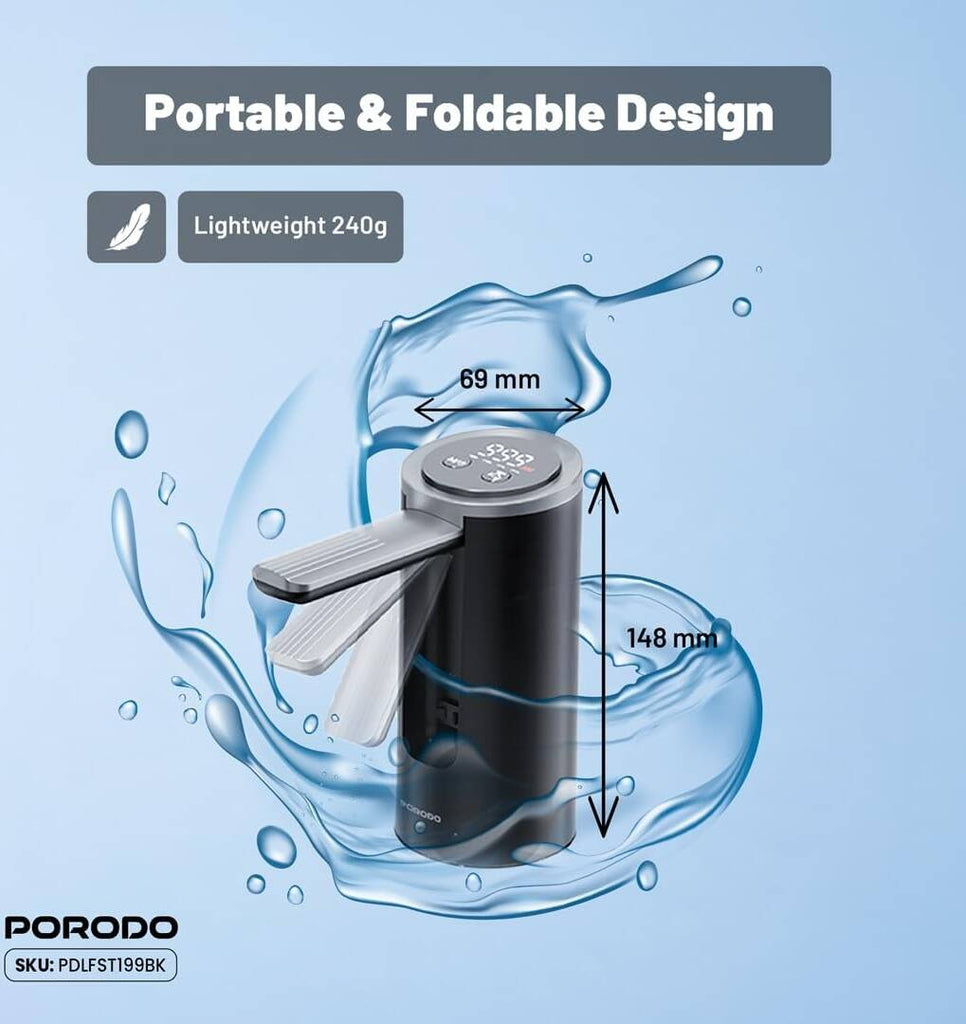 توفر مضخة الماء الكهربائية القابلة للطي من بورودو لايف ستايل طريقة سهلة وعملية لاستخدام مياه الشرب من الجالونات الكبيرة دون عناء. بفضل التصميم القابل للطي والتشغيل بلمسة واحدة، تمنحك استخدامًا مريحًا مع أداء هادئ وسريع في ضخ المياه